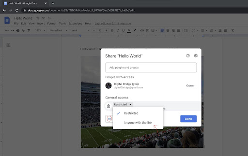 Once you click on restricted, you could change the general access to “anyone with the link”.