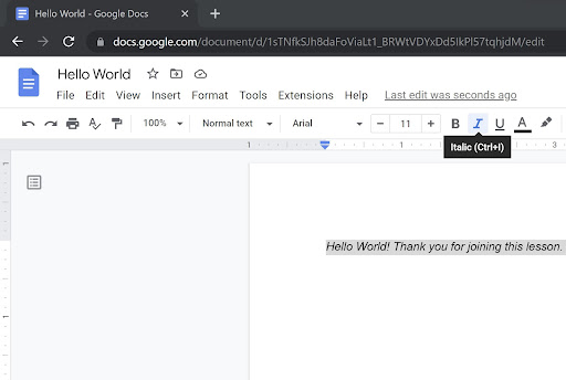 Similarly to bolding your text, highlight your text and click on the 'I' icon to italicize your text.