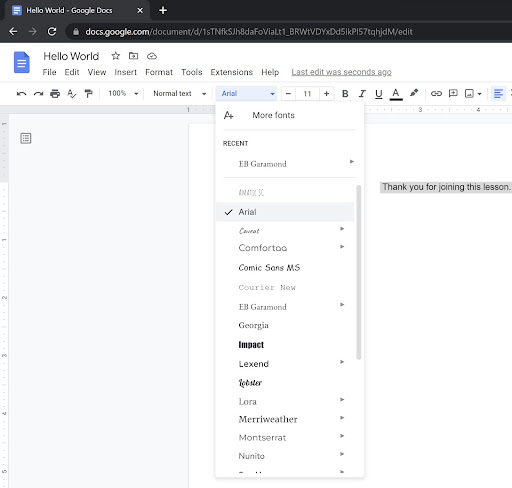 In order to change the font, click on the box as shown above and pick your preferred font.