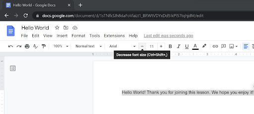 In order to change the size of your text/ font, highlight your text and click on the plus ('+') or minus ('-') button on either side of the box to change the size of your text.