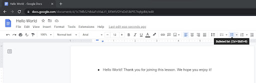 Click on the 'Bulleted List' button (found on the right end of the tool bar) to create bullet points.