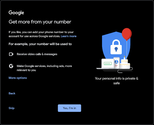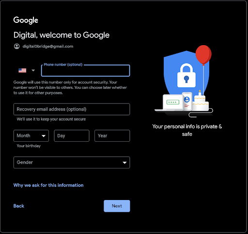 This screen should pop up once you have successfully verified your phone number. Now you may add an already existing email to help with password recovery (discussed in later lectures). Other than that please fill out your respective information.