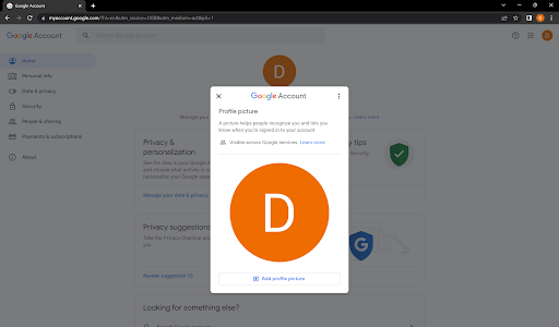 From there you should be able to click on “Add a profile picture”. After hitting this, there should be a vast collection of photos you can choose from.